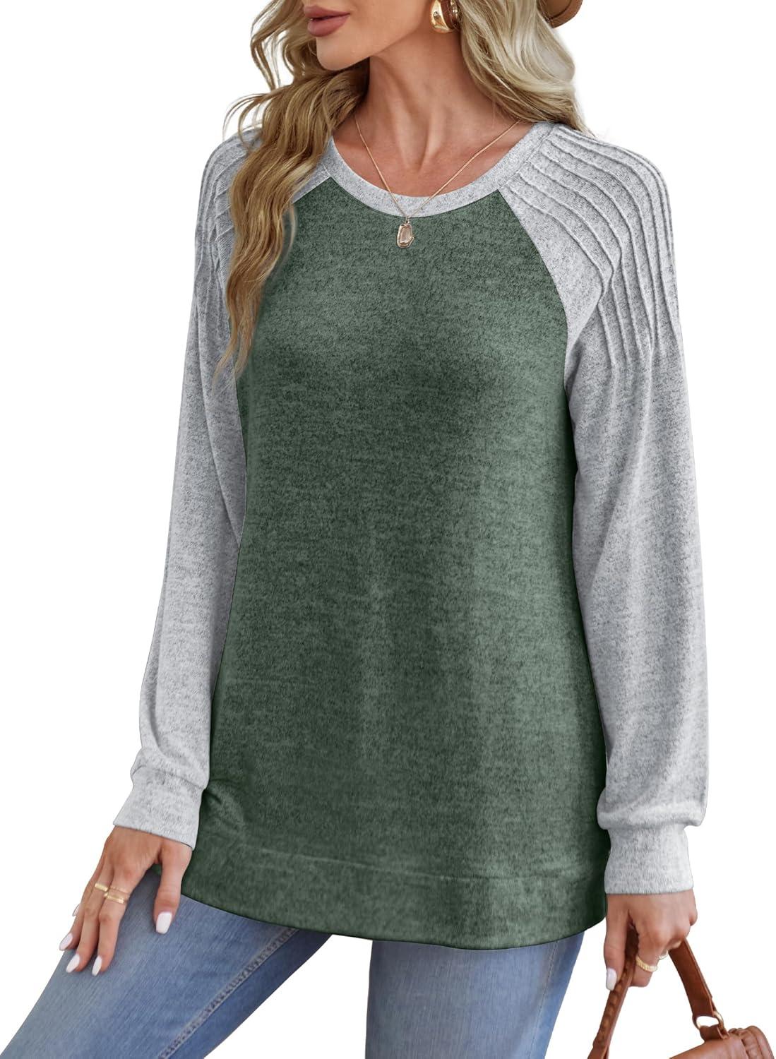 saloogoe sweatshirt for women crewneck pleated long sleeve shirts tunic tops fall fashion 2025 soft womens sweaters winter clothing for women plus size spring clothes vacation outfits