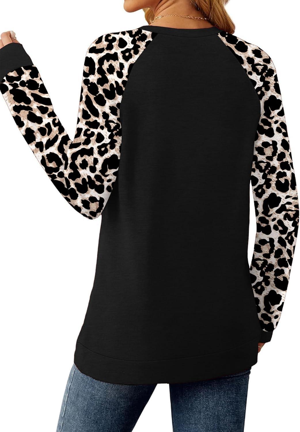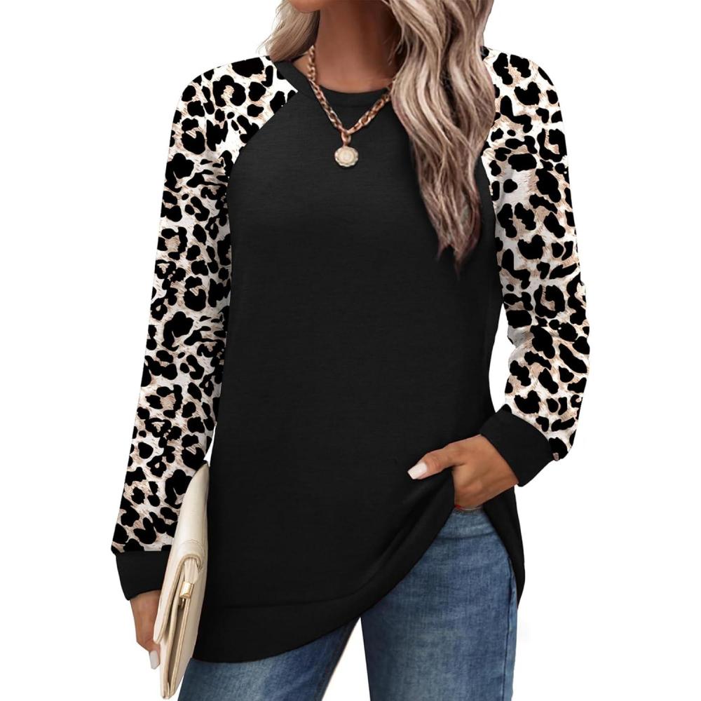 Saloogoe Tunic Sweatshirts for Women Crewneck Lightweight Sweaters Raglan Long Sleeve Shirts Fall Fashion Tops 2025(Leopard Print)