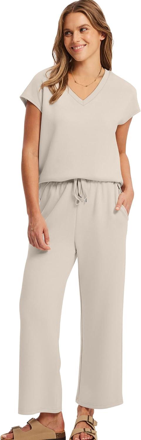 Be the first to review “Saloogoe Two Piece Sets for Women Summer Outfits Lounge Sets V Neck Tops Wide Leg Pants Woman Vacation Travel Outfits(Beige)”